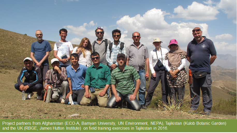 Initial project initiation meetings coupled with field and community training exercises were conducted in Tajikistan and hosted at the Kulob Botanic Garden. Participants included representatives from ECO-A, Bamyan University, UN Environment and the Bamyan office of the National Environment Protection Agency alongside UK partners from the Royal Botanic Garden Edinburgh and the James Hutton Institute. Colleagues and students from Tajikistan also took part in this training exercise.